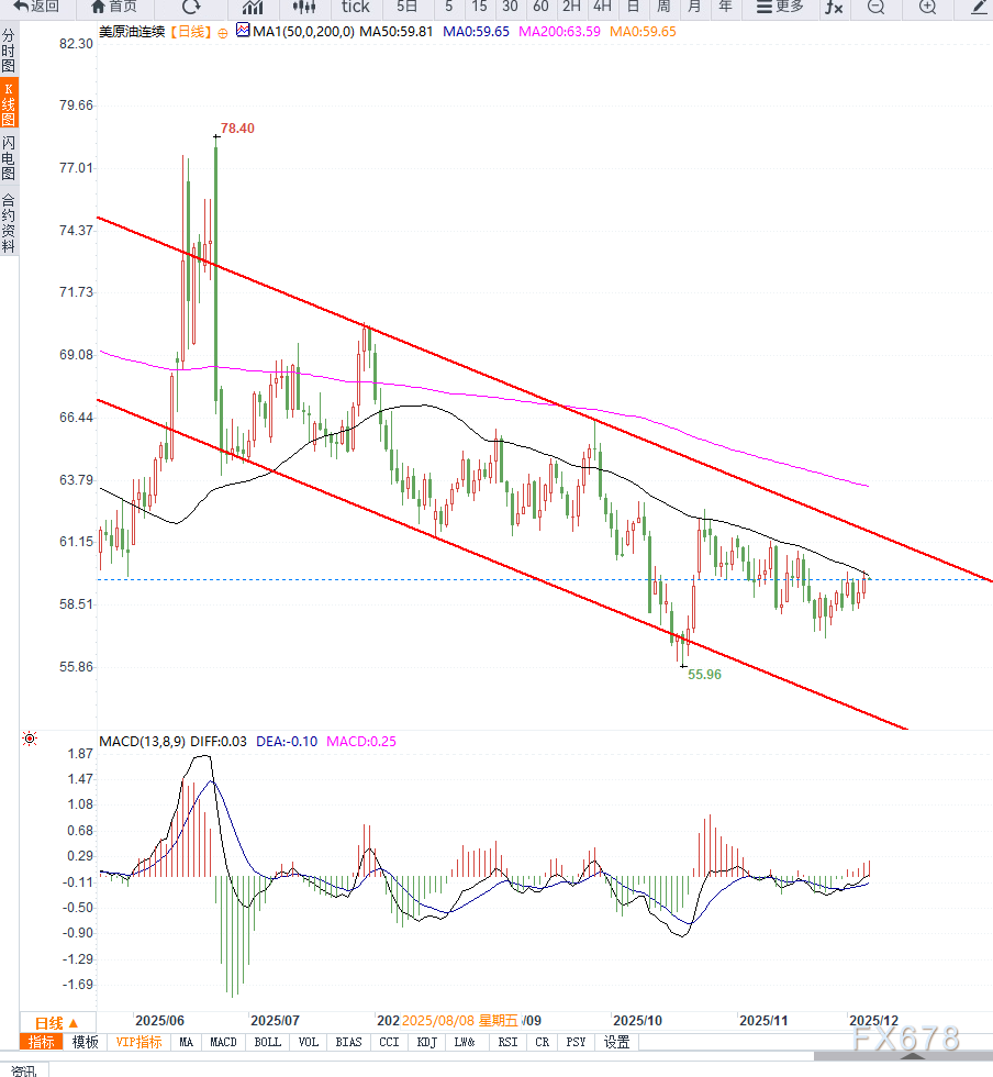 技术面进一步确认反弹趋势。如果未来美联储继续推进宽松节奏,油价仍具上行空间。不确定性在于全球需求恢复是否跟上预期,以及地缘局势若突然缓和可能带来供应压力