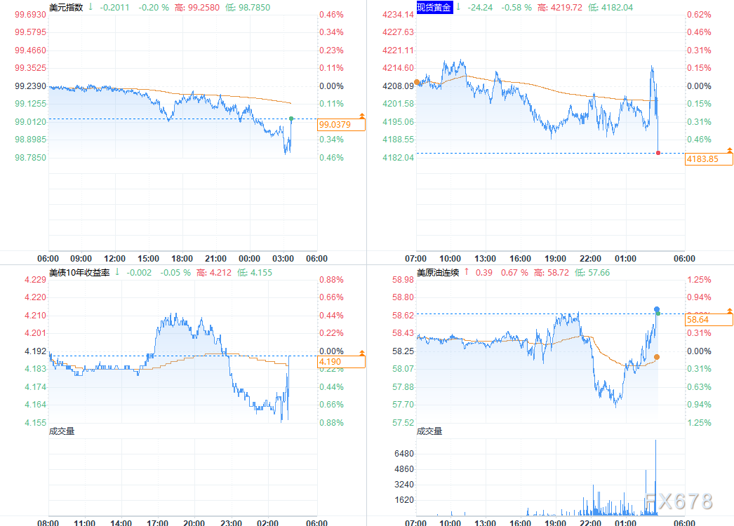 利率市场的反应更为直接:利率期货数据显示,市场对2026年1月美联储暂停降息的概率预期从决议前的70%迅速攀升至78%,表明市场已快速调整对后续政策的预期;作为长期利率基准的10年期美债收益率在决议公布后回升至4.18%附近,反映出市场对美联储政策转向的认可。