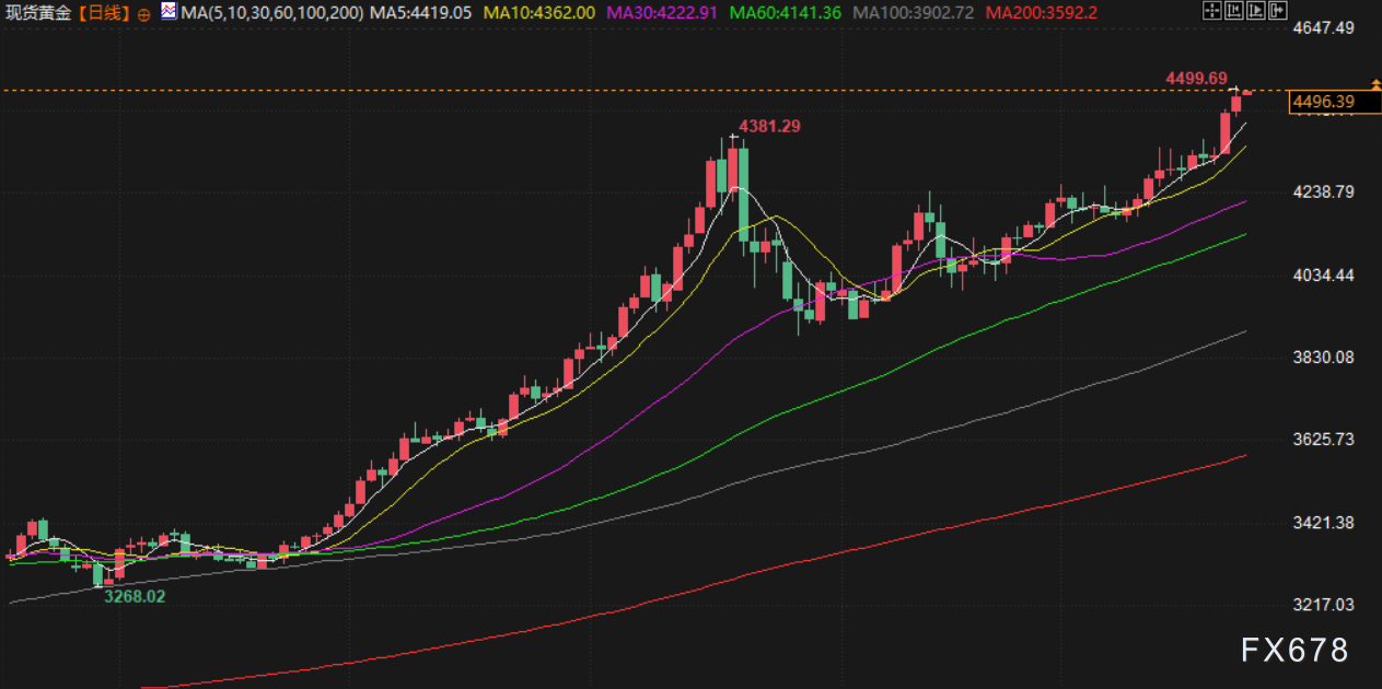周三(北京时间12月24日)亚市早盘,现货黄金交投于4491美元/盎司附近,避险情绪、美元走软预期及利率下降预期提供